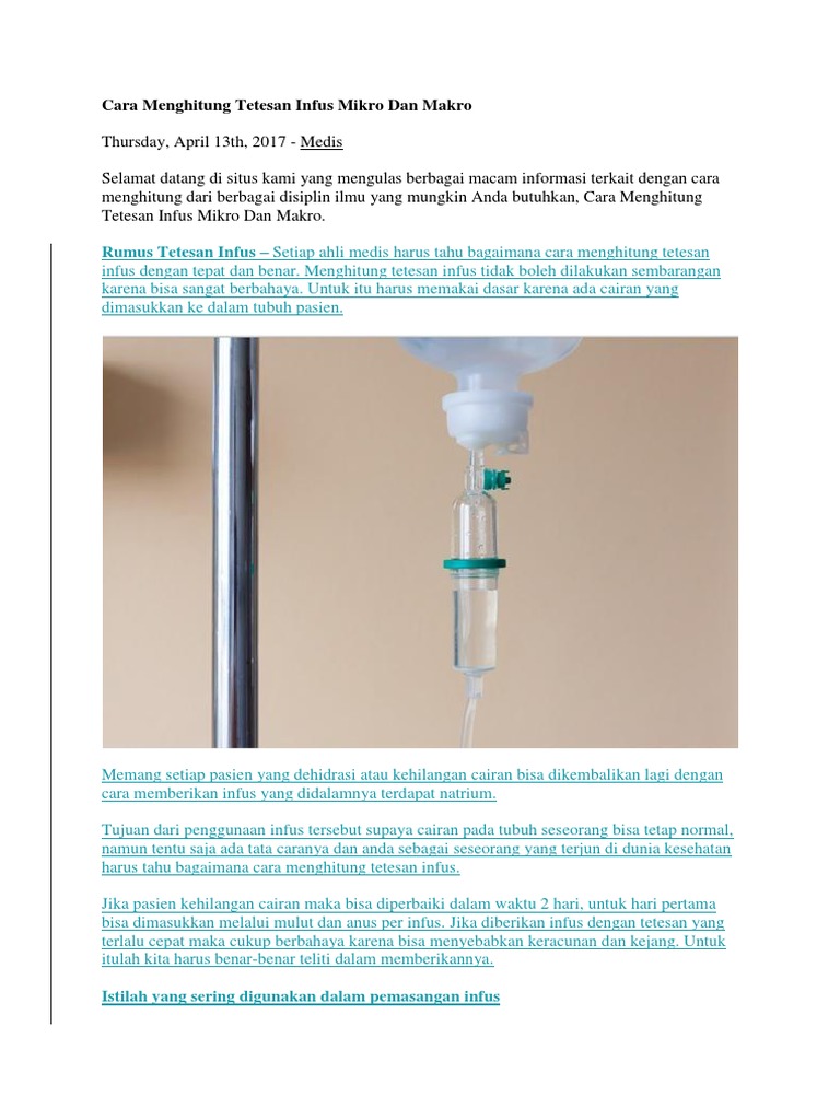 Cara Menghitung Tetesan Infus Mikro Dan Makro Lengkap Tutorialbahasainggris Co Id