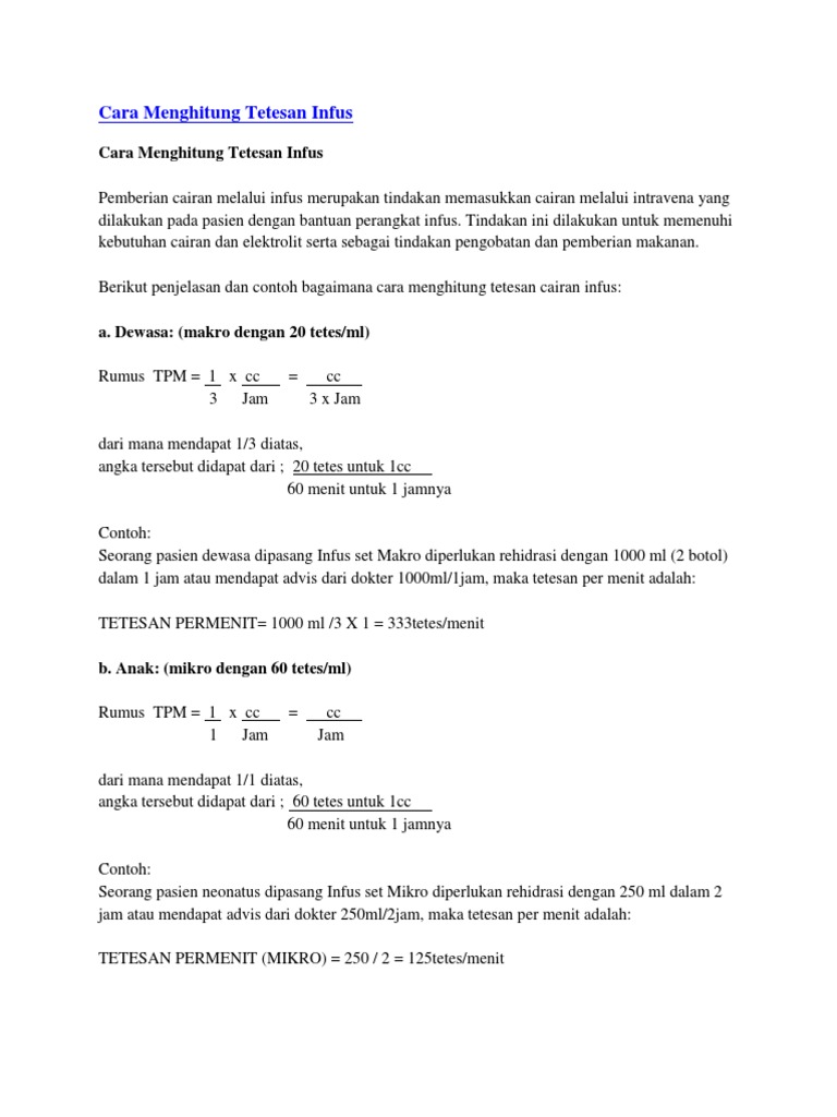 Cara Menghitung Tetesan Infus Docx